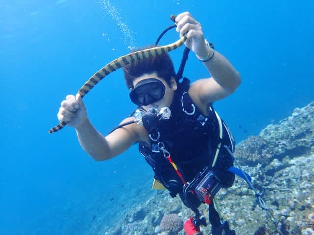 タコにすみ吐かれたり、ウミヘビに絡まれたり、なんやかやで 気付いたら40分50分…..