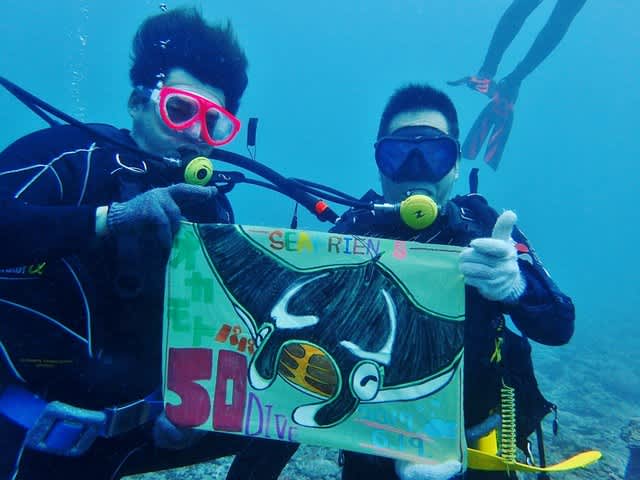 ここでリピーターのオカモトさん!50ダイブ達成です♪