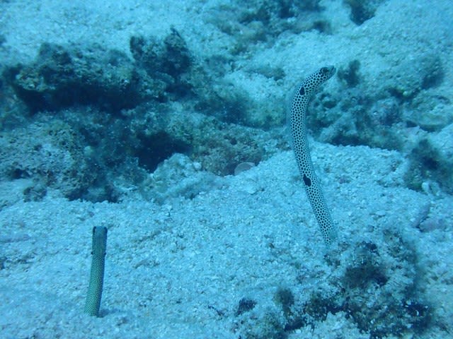 ヤッコエイが砂にもぐって遊んでいたり、チンアナゴ、アカククリなどなど
