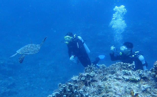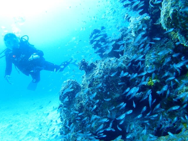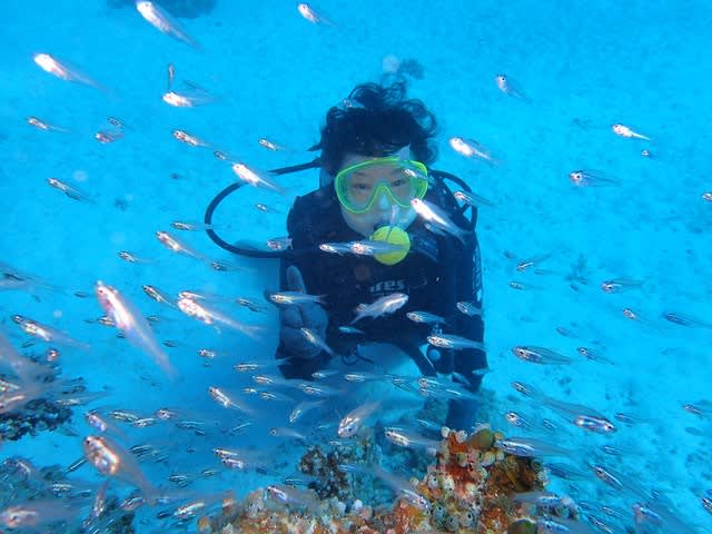 水中は心を癒しながらダイビング。キラキラ魚がきれいでしたねー。