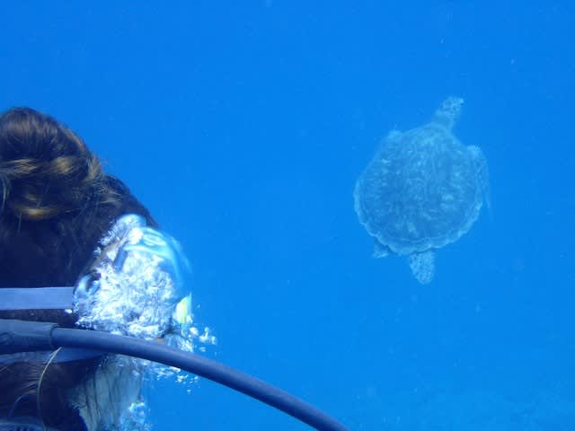日当たりの良さそうなリーフの上には 2匹のアオウミガメもおりまして、