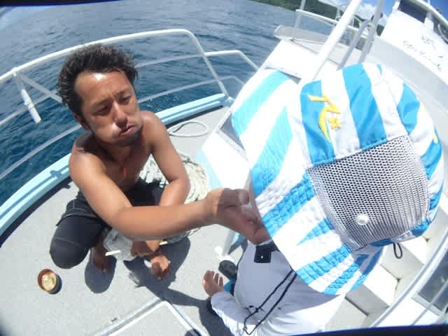 コンディション:南の風 波:1.5m 気温33℃ 水温29℃ 透明度~20m