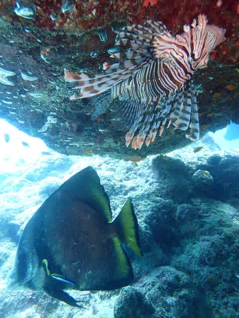 クリーニングされるアカククリと 自分もしてほしいのか?ミノカサゴ