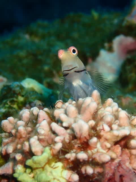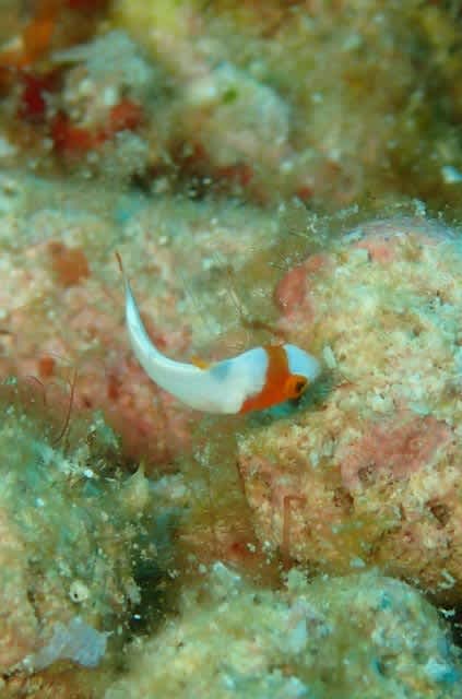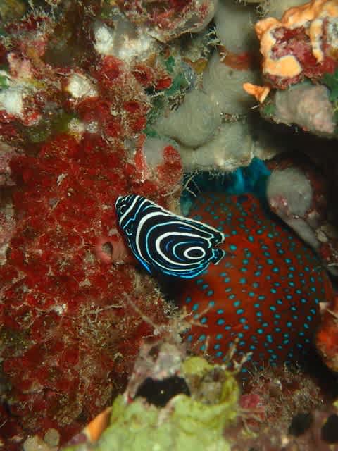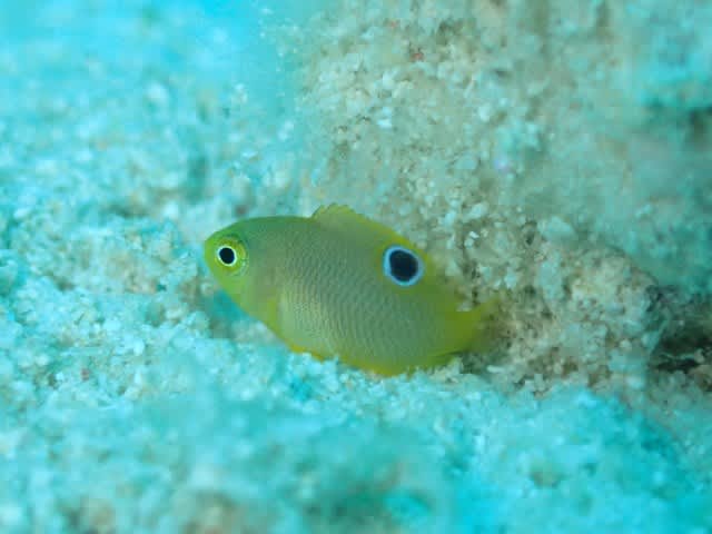 砂地ポイントでは ぐるぐる渦巻きのタテジマキンチャクダイ幼魚