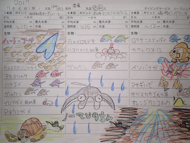 コンディション:南東の風時々北東の風 波1.5m 気温32℃ 水温29℃ 透明度~20m