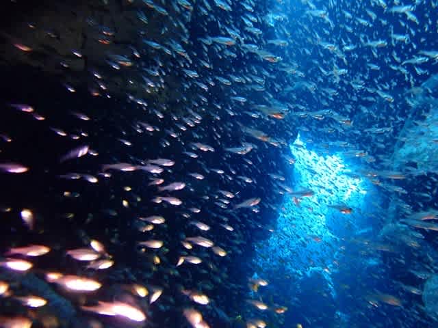 もっさりどっさり魚の群れをかき分けて地形を進む楽しさ!!たまりません(V)o¥o(V)