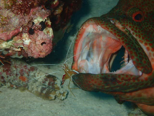 バカーーーっっと大口を開けてクリーニングされるミーバイや
