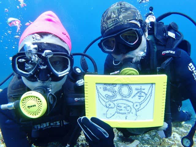 丁度50本の記念ダイブのゲスト様とフレームに収めることが出来ましたよ♪