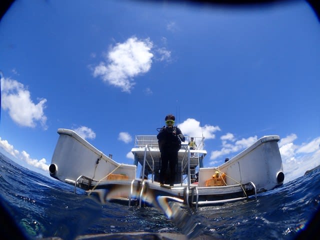 コンディション:南西の風 波1.5m 気温34℃ 水温30℃ 透明度~20m