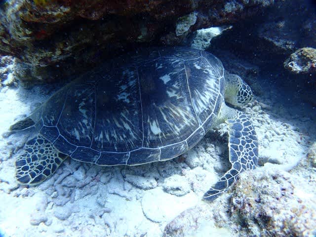 ぐ~すかぴ~ っとガチ寝でピクリともしないアオウミガメをGET