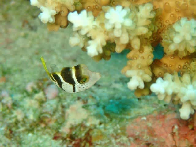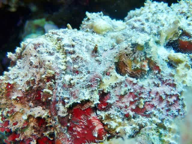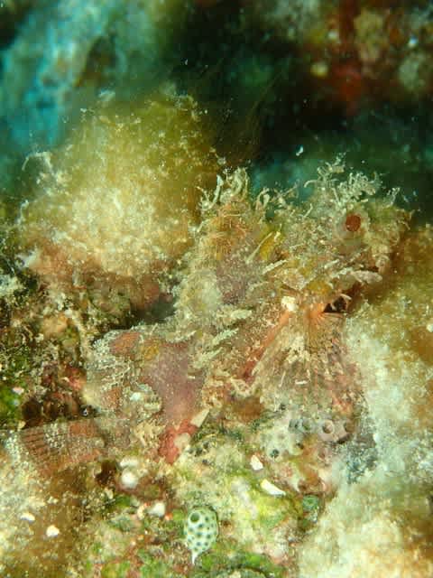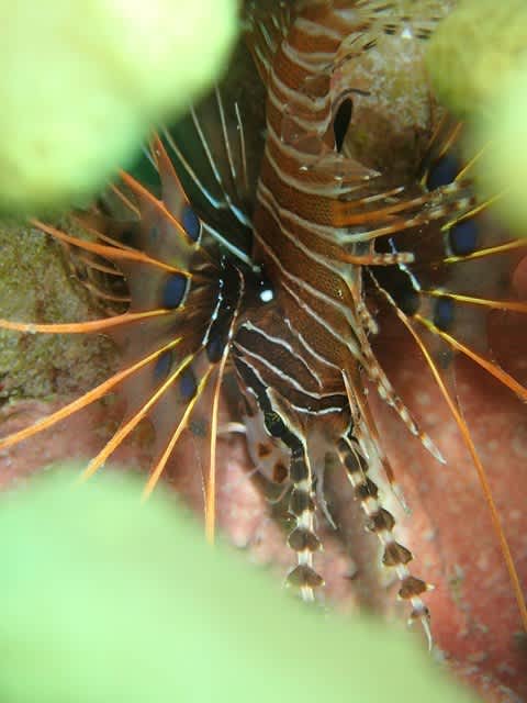 サンゴの中にはかわいいネッタイミノカサゴの幼魚ちゃんがいましたよーかんわいぃー