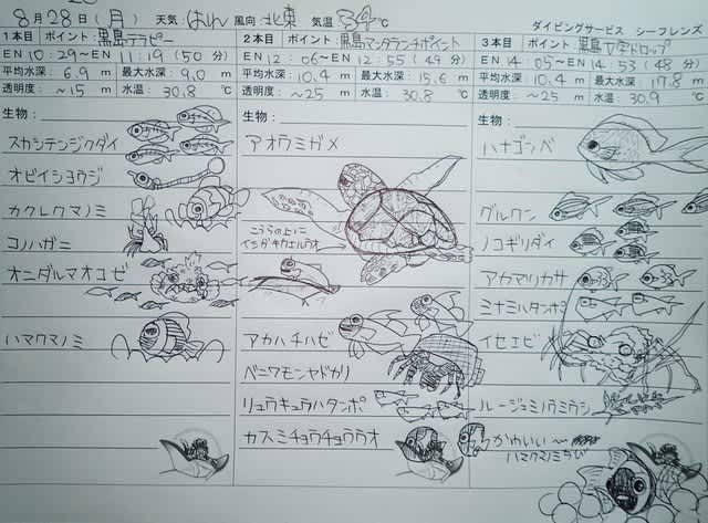 コンディション:北東の風 波2m 気温:33℃ 水温:31℃ 透明度~15m
