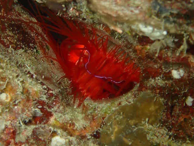 それをにょろっと全身穴からでて覗いていた目の模様のすごいエリグロギンポもかわいい♪