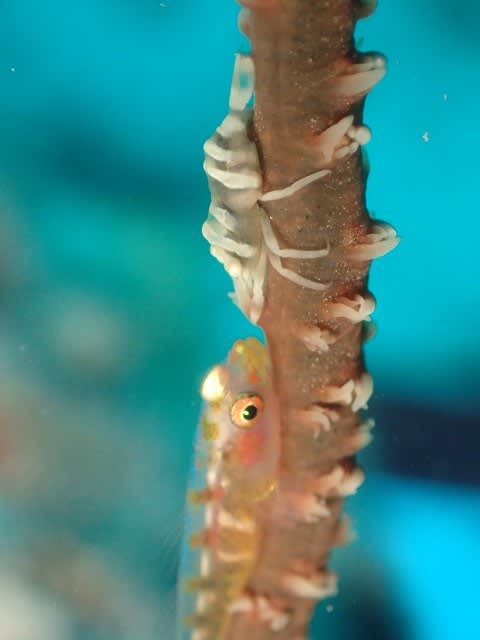 ガラスハゼとムチカラマツエビが向かい合ってにらめっこしていたのもホッコリしちゃいますね(*^_^*)