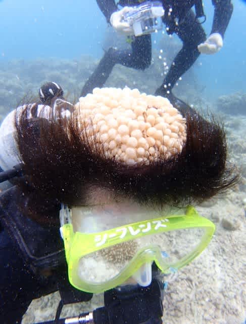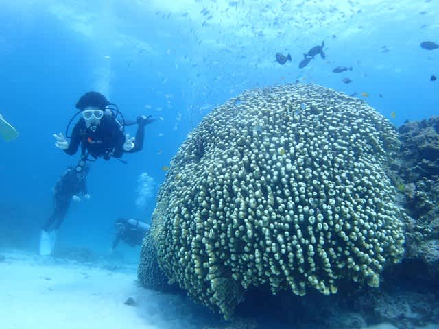 もりりっ っと大仏さまの頭のような コモンシコロサンゴともハイチーズ(^_^)v