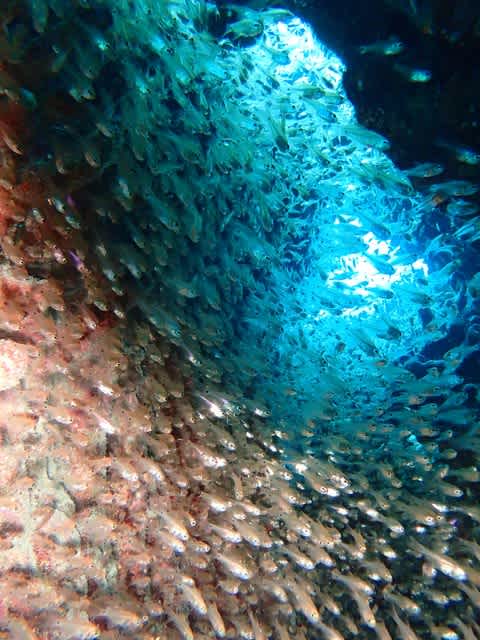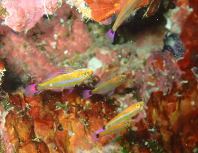 テンジクダイを補食しようと、10匹以上のミノカサゴたちが集まって、ヒラヒラと美しいですねぇ(^w^)