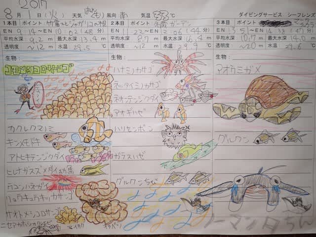 コンディション:南南西の風強く 波:2.5m 気温:33℃ 水温:29℃ 透明度~15m