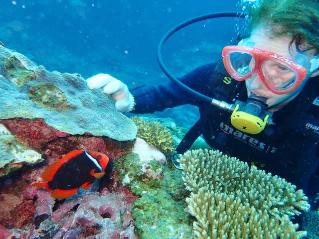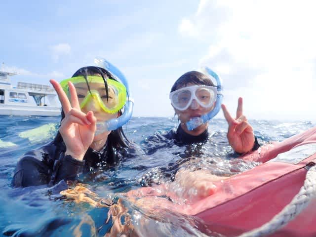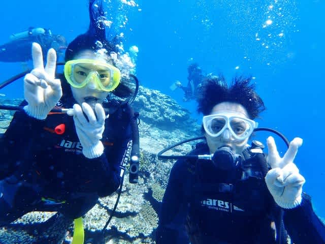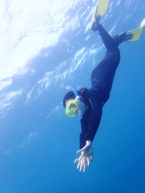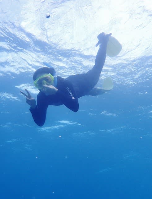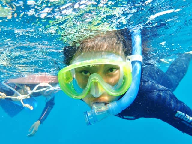 スノーケルで珊瑚を見ながらダイビングのウォーミングアップ。