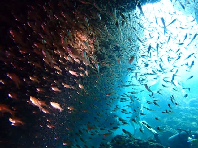 なかにはテンジクダイが5670433匹群れを成してちょー賑やかですよ(//∇//)