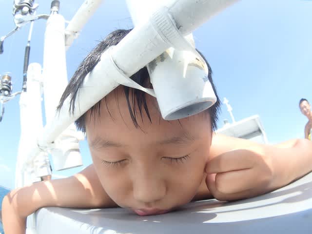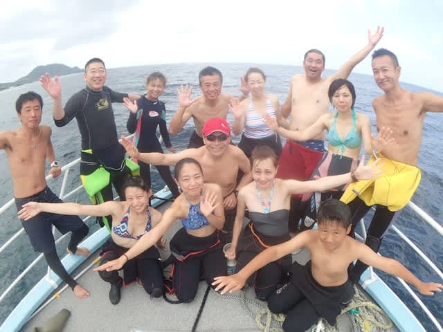 すこーし風も落ち、石崎マンタ方面へ出港できた本日のシーフレチームです( v^-゜)♪