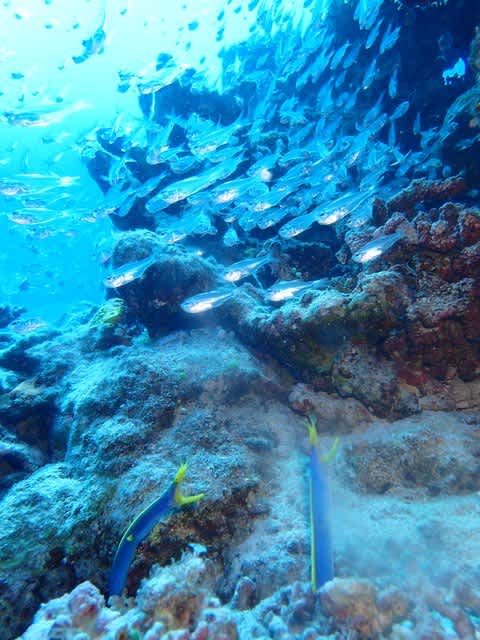 一本目は竹富南で砂地にエントリーです♪久しぶりに入るポイントは何だか知らないけどスカシテンジクダイの群れが爆発です!!