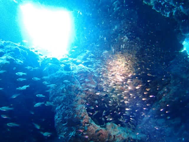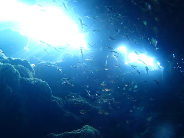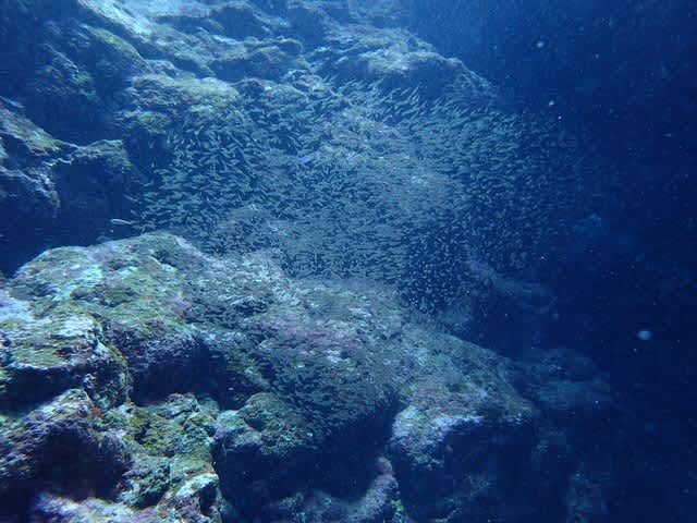 穴のなかでリュウキュウハタンポの群れがうろうろキラキラしてますねーステキ(°▽°)♪