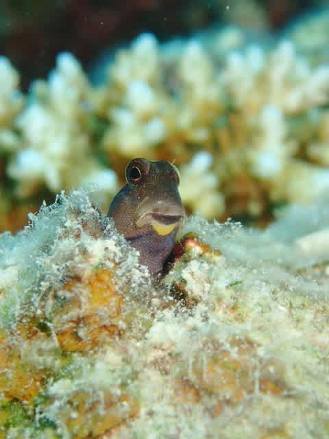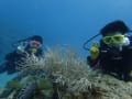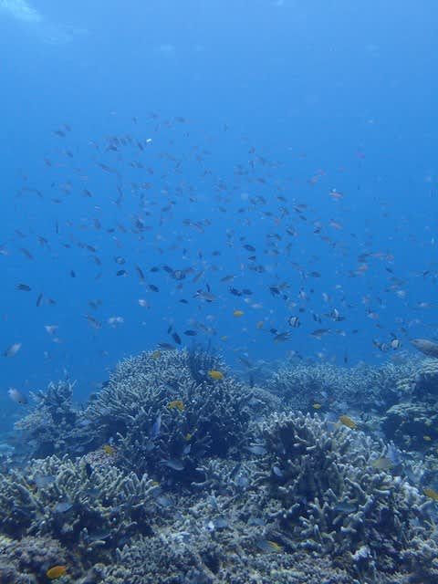 ユビエダハマサンゴに群生するスズメダイたちと戯れました。