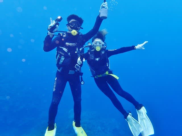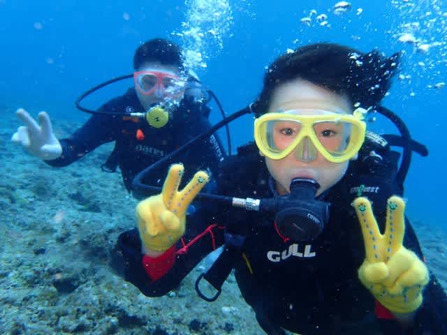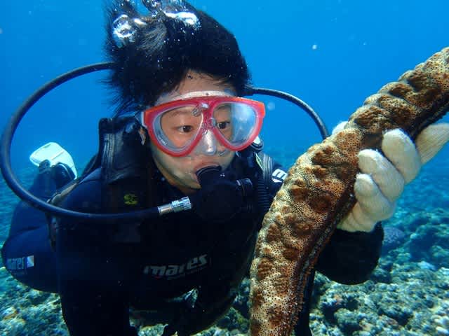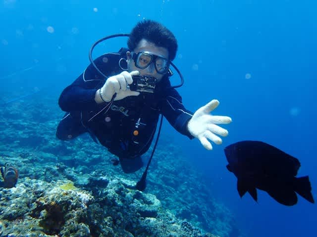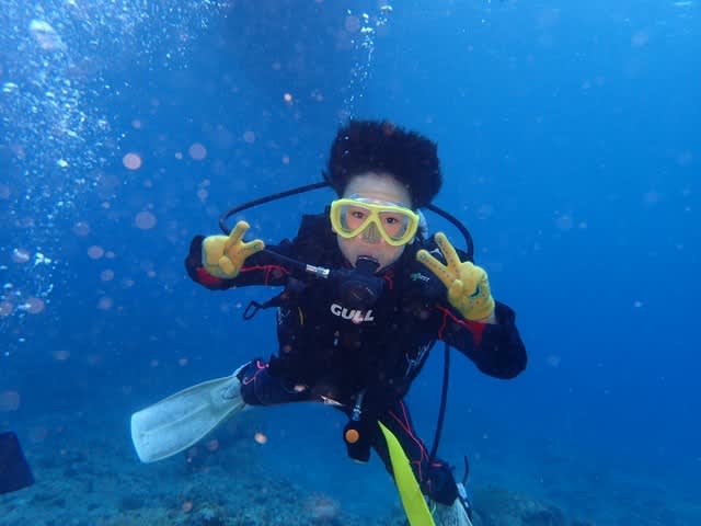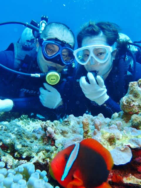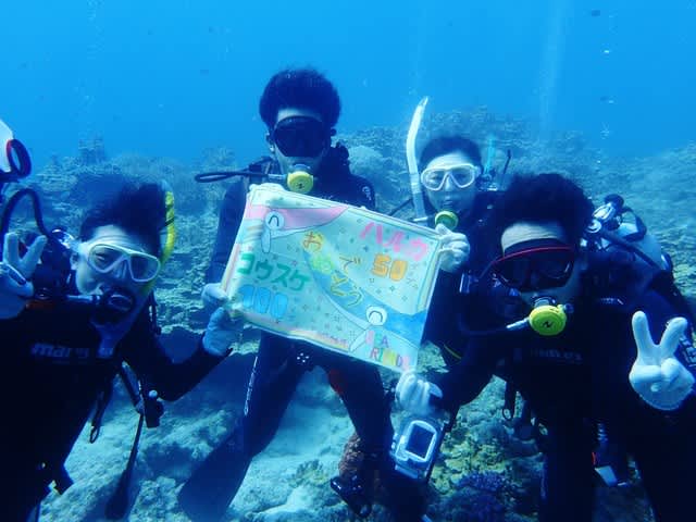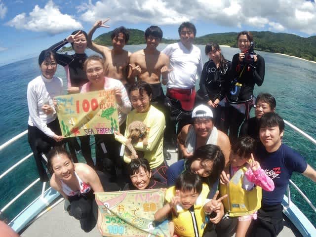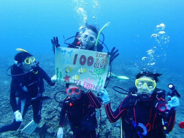 こちらでは リピーターのアサイさんが記念すべき100ダイブ達成(V)o¥o(V)