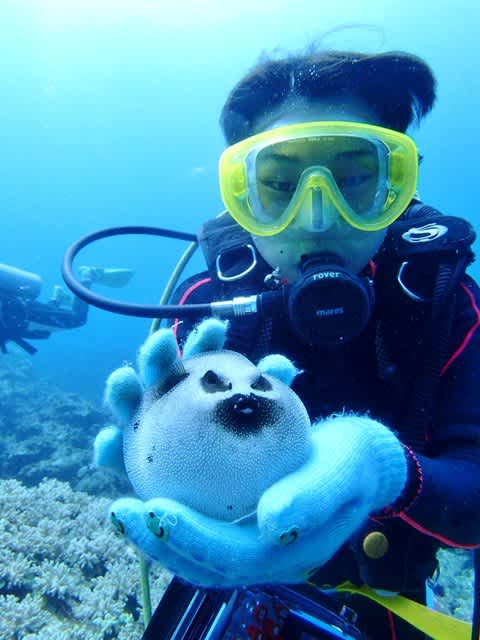 コクテンフグもちょいんと捕まえてにらめっこしましたよ(^0_0^)