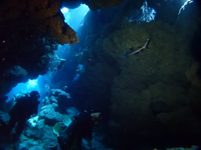 3本目は仲本ケーブの穴の中で ホワイトチップシャークに遭遇!!!!!