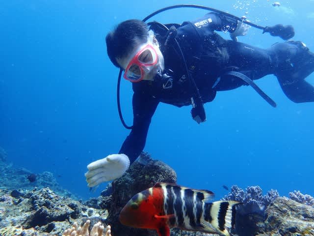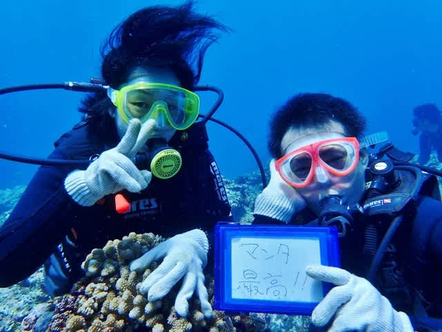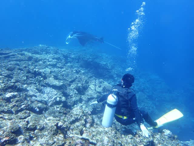 初マンタに驚いてすってんころりんお尻どっすんなってましたね(^ム^)