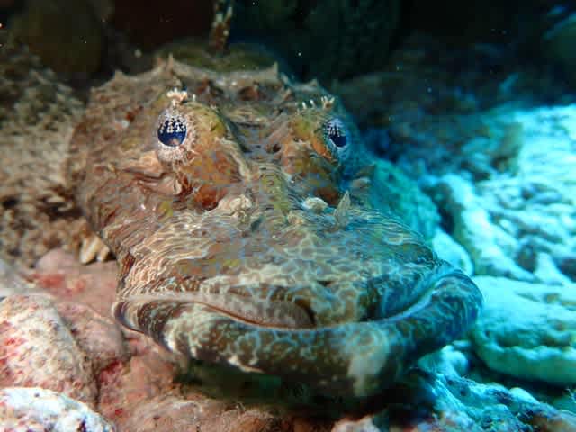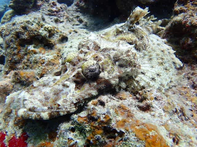 ガレ場ででっぷりひなたぼっこ中のサザナミフグにほっこりさせられました(*´∀`)
