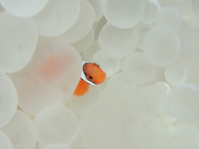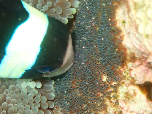 チアリーダークラブ、光る貝、ちみハマクマノミちゃん、せっせと卵を手入れするクマノミ母ちゃん(*^▽^*)