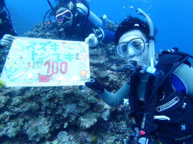 ここでリピーターのスズキさん!!!100ダイブ達成~~❀❀❀