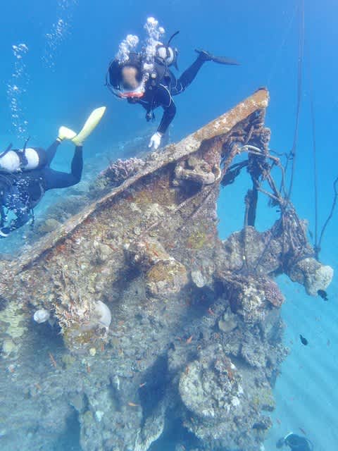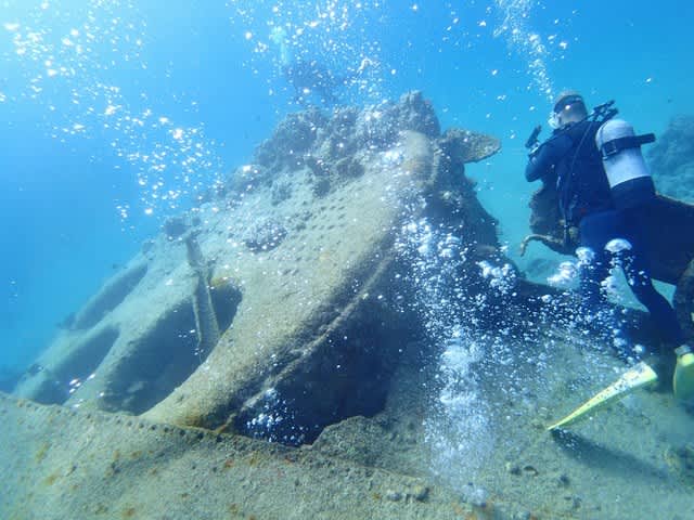 朽ちた巨大船が水底に鎮座しており、水底も10メートルちょっとと浅くて楽チン♪(^◇^)