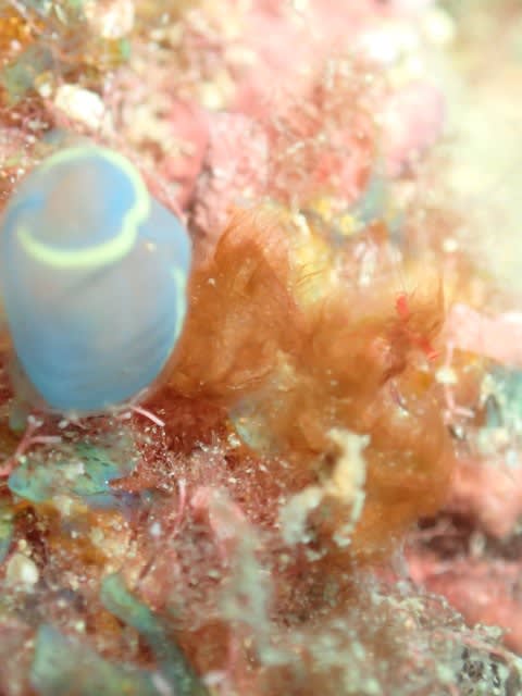 青いホヤの横にいたもじゃもじゃオランウータンクラブなんかと遊んできました(^O^)/