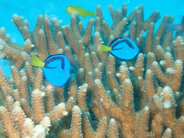 2匹でぴよぴよ遊んでるナンヨウハギ幼魚♪