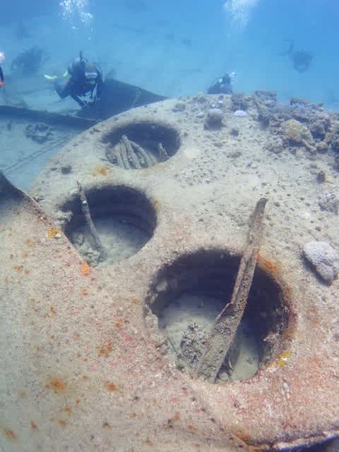 沈船内に降りる光景がなんだか神々しいわっ!光を浴びておりる神様みたいやーん(* ̄ー ̄)