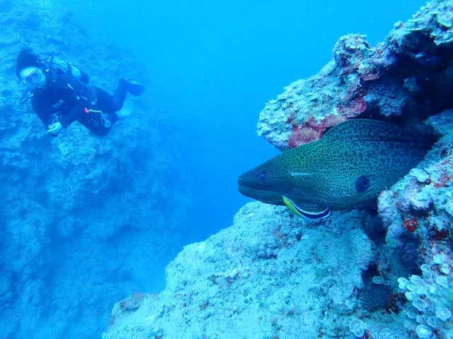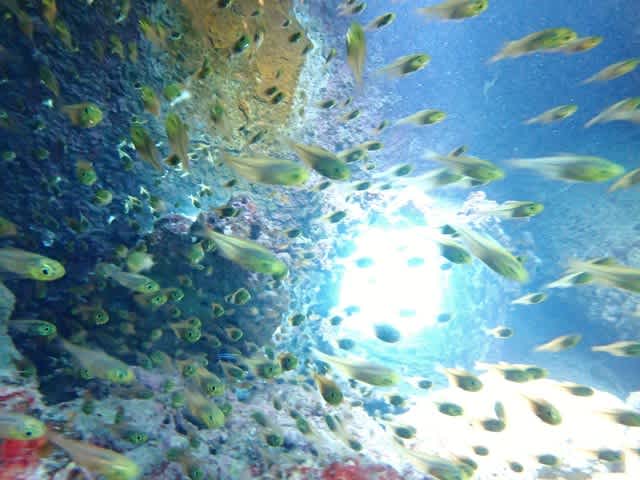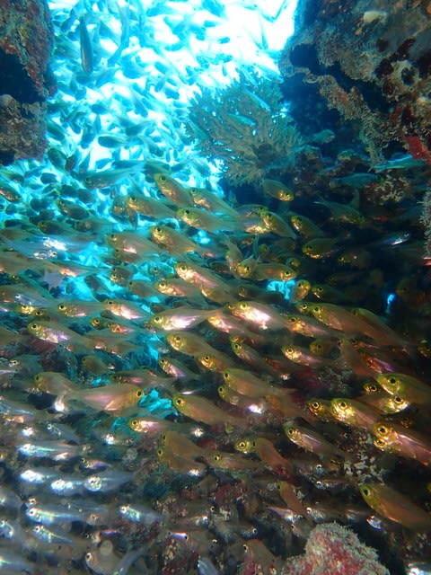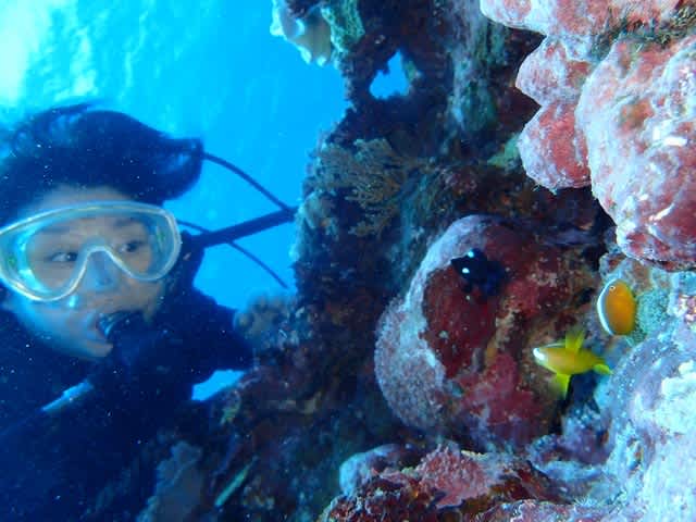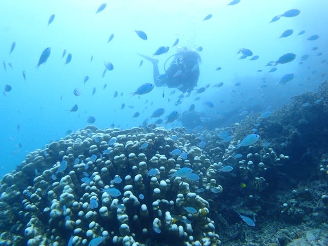 波風で島ではできない海況ですが、近場透明度マル~な3ダイブサイコーでした☆