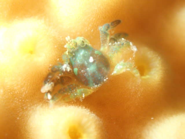 サンゴの上にはちっこすぎるぜ!アシビロサンゴヤドリガニ