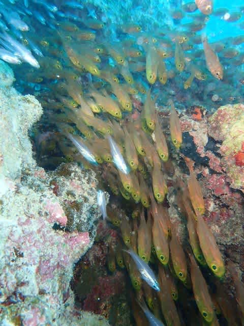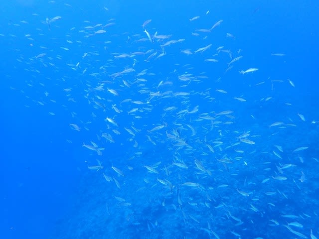 ツムブリの群れがぐるぐるーっと、回りを泳いで遊んでくれました(^∇^)