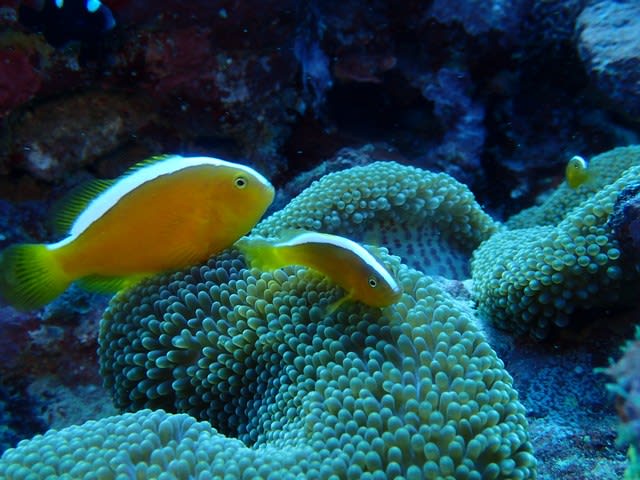 スケベピンクなイソギンチャクに住むハマクマノミ❤