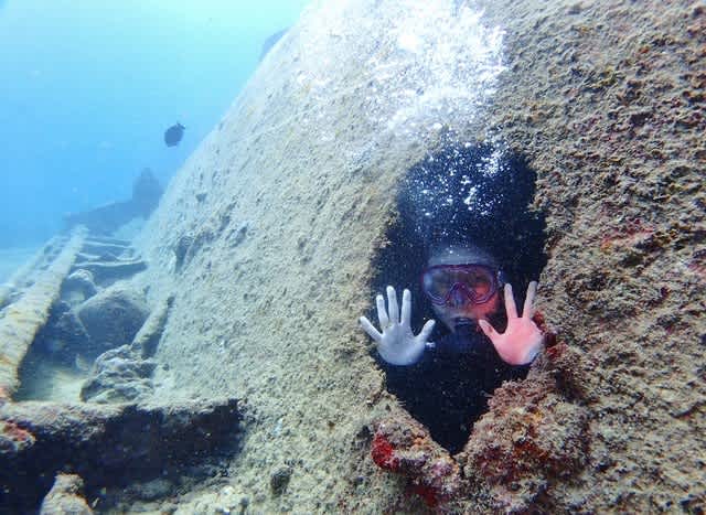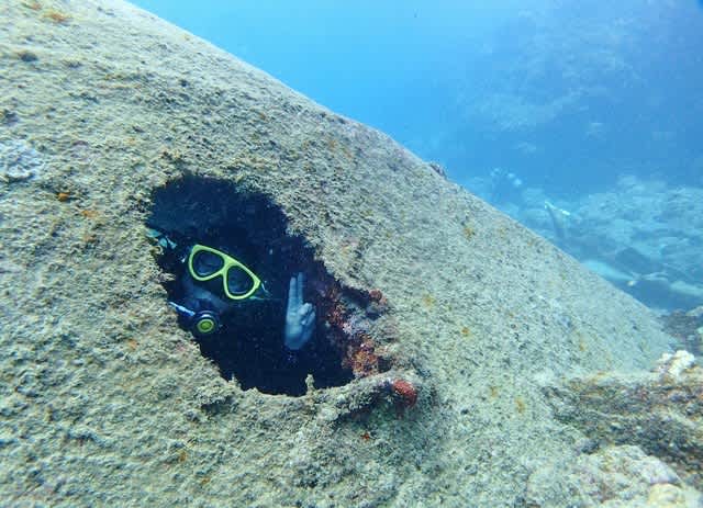 沈船内に降りる光景がなんだか神々しいわっ!光を浴びておりる神様みたいやーん(* ̄ー ̄)