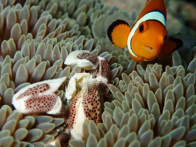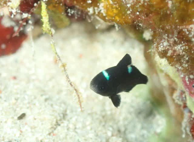 クマノミハウスに居候中の チビチビッ子ミツボシクロスズメダイの幼魚っ!!(☆ワ☆)