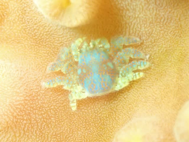 よぉ~く見ると美しい体色だよねっ!アシビロサンゴヤドリガニやら~