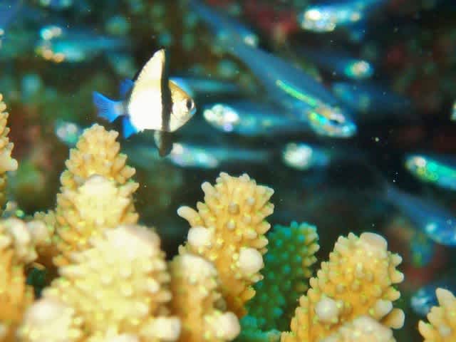 キュートなフタスジリュウキュウスズメダイの幼魚もっ❤ブルーなしっぽがキレイでなおステキでした