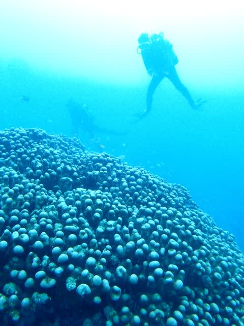 コンディション:東の風強く 波2.5m 気温25℃ 水温24℃ 透明度~25m
