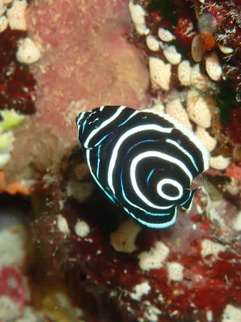 トンガリの根にはクルクル渦巻き タテジマキンチャクダイ幼魚ちゃん(^v^❤)