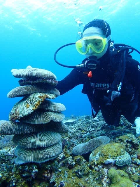 初!FUNダイブの彼も、すんばらしいサンゴの群生にうっとり&びっくり!!