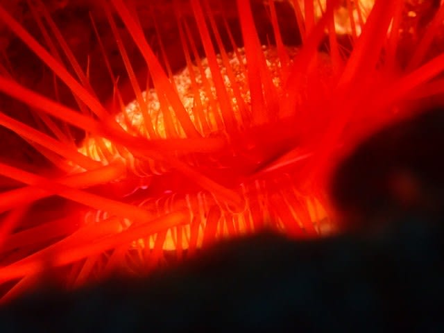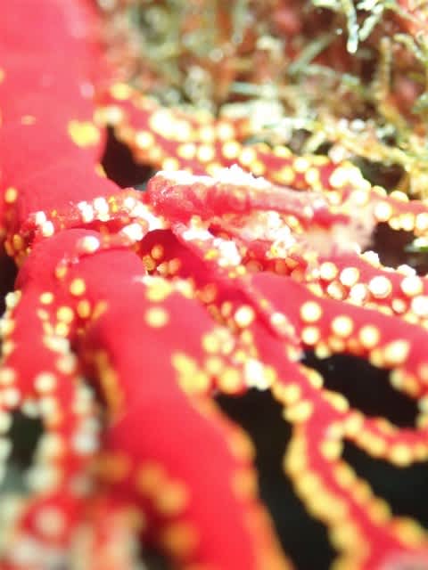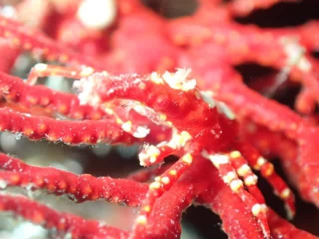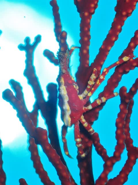 真っ赤なイソバナに真っ赤なイソバナガニも太陽バックにカッコつけておりましたv(´・∀・`*)v